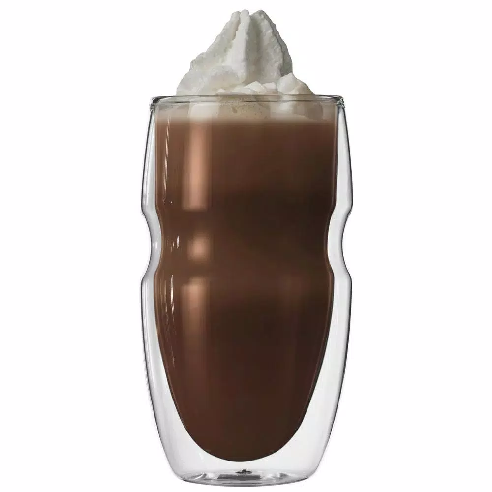 Made of durable, heat and condensation-resistant, mouth-blown borosilicate glass of the finest quality, the 16 oz. Serafino glasses are the largest in the Ozeri Artisan Series of award-winning handcrafted drinkware. Each glass features an elegant double-walled design that suspends beverages within an inner wall for the ultimate insulation, preserving drinks at their ideal temperature. The Serafino’s unique double-wall design creates an engaging optical effect, while the wraparound contour provides a natural aesthetic grip. Each glass is made to keep your hands cool even with your hottest drinks, and free of condensation with your chilled beverages. The patented Serafino glasses are great for coffees, cappuccinos, hot or iced teas, cocktails, frozen beverages and much more. Whether it is an occasion for a glass of wine, coffee, or some other beverage, borosilicate glass is completely resistant to acids, and your Ozeri glasses will never lose their original sheen. Each set contains 6 handmade glasses designed for lifetime use. The Serafino glasses are completely microwave and freezer safe, and ship in an elegantly printed and carefully packaged box with a No-Hassle warranty.