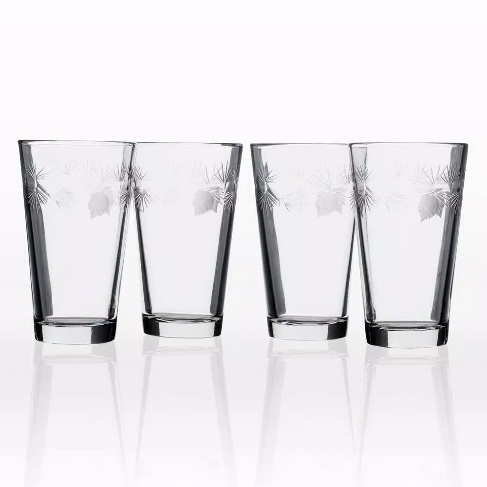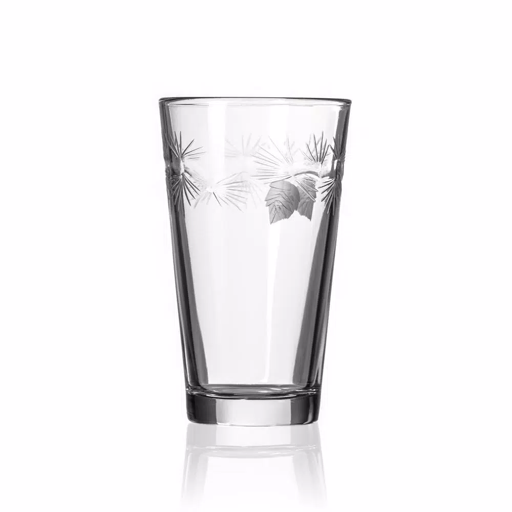 Nothing speaks to the great outdoors like an evergreen tree. This delightful, multi-facetted Icy Pine glassware collection by Rolf Glass make a bold statement. Contrasting pine needles are diamond-wheel engraved and brilliantly polished to add dimension and sparkle. American made, these decorated glasses are ideal for any occasion from your holiday table to your picnic table.
