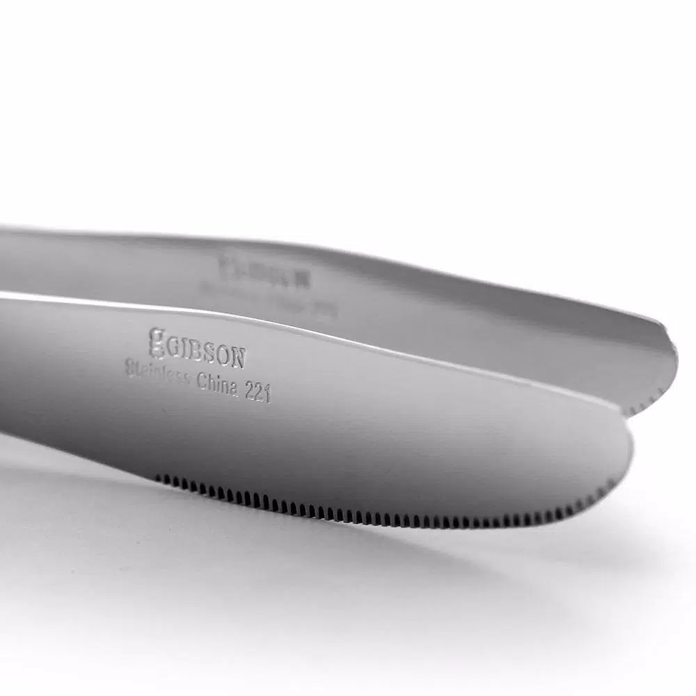 Add some sleek accents to your dining room collection with the Gibson Home Classic Profile 36 Piece Stainless Steel Dinner Knife Set. These beautifully designed dinner knives are crafted from stainless steel, making them durable and built to last through consistent use. Each knife is smooth to the touch with a handle that is sculpted to fit comfortably in your palm. Each set comes complete with 36 dinner knives.