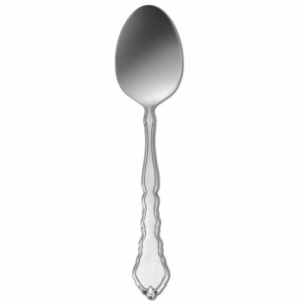 This stainless flatware design inspires timeless beauty with its bright, delicately sculpted border. A brushed, satin finish on the center panel contrasts nicely against the polished edges of the carved handle and the reflective tines and bowls. This flatware set is made of 18/10 Stainless Steel and is dishwasher safe.
