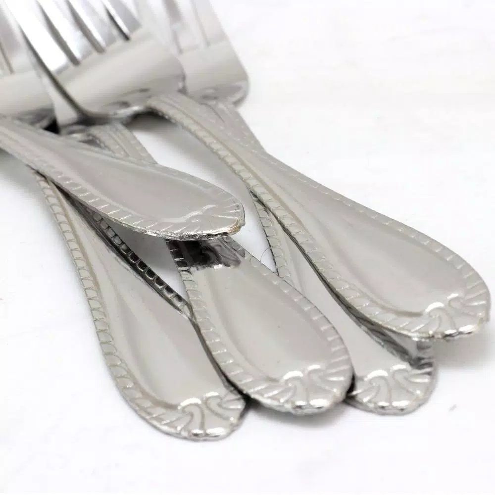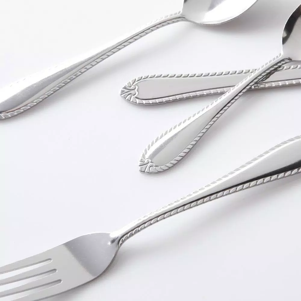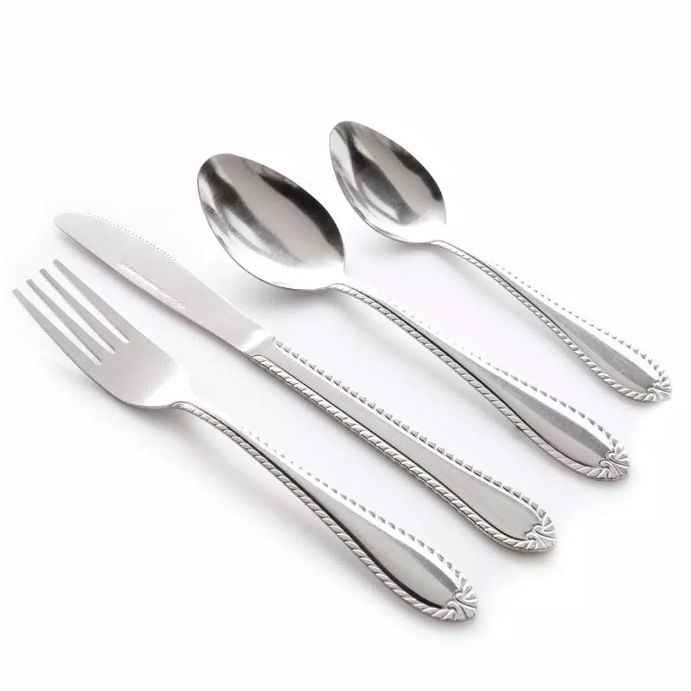 - Set includes: six 8.25 in. dinner knives six 7.25 in. dinner forks six 7 in. dinner spoons six 6 in. teaspoons